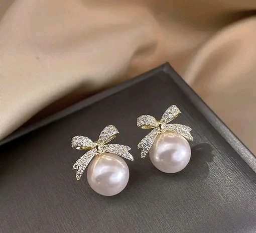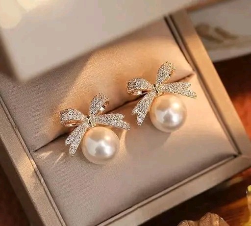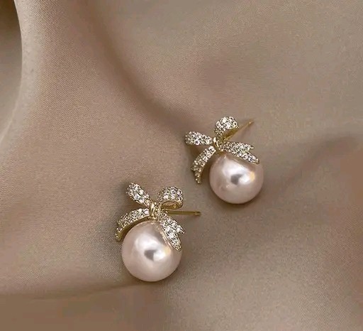 Name: Classic Bowknot Rhinestone Pearl Stud Earrings For Women Exquisite Grace Gold Earring Jewelry For Woman & Girls